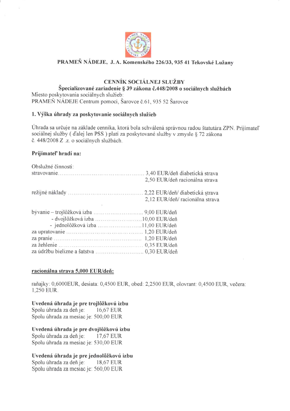 PRAMEŇ NÁDEJE Centrum pomoci, 935 52 Šarovce č.61