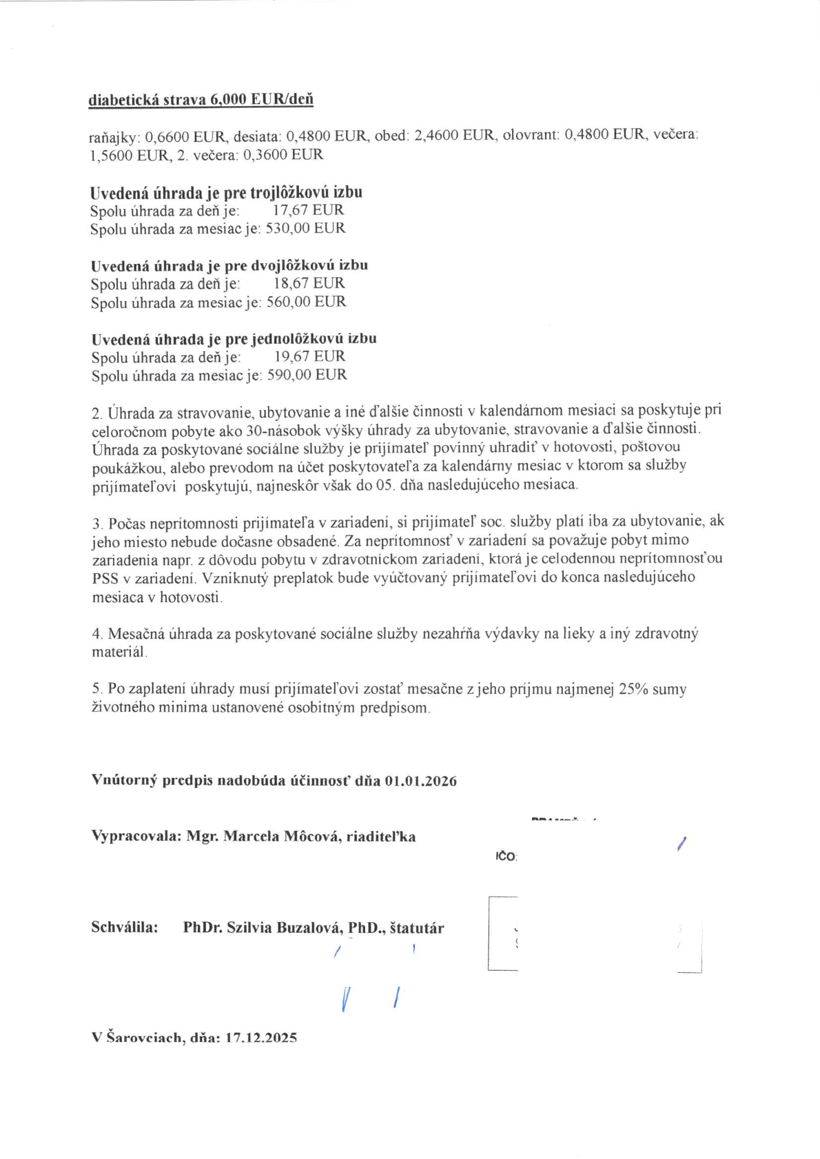 Cenník služieb